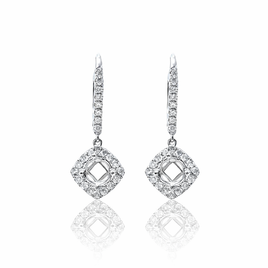 18K White Gold Diamond-Shape Drop Hoop Mountings