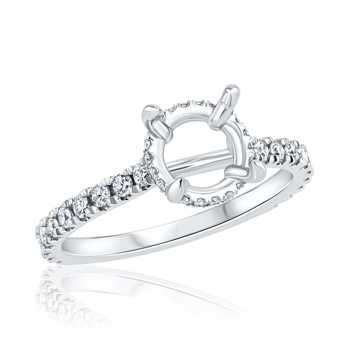 Platinum 4-Prong Single-Row Halo Design Engagement Mounting set with 45 round diamonds totaling=.51cts t.w.