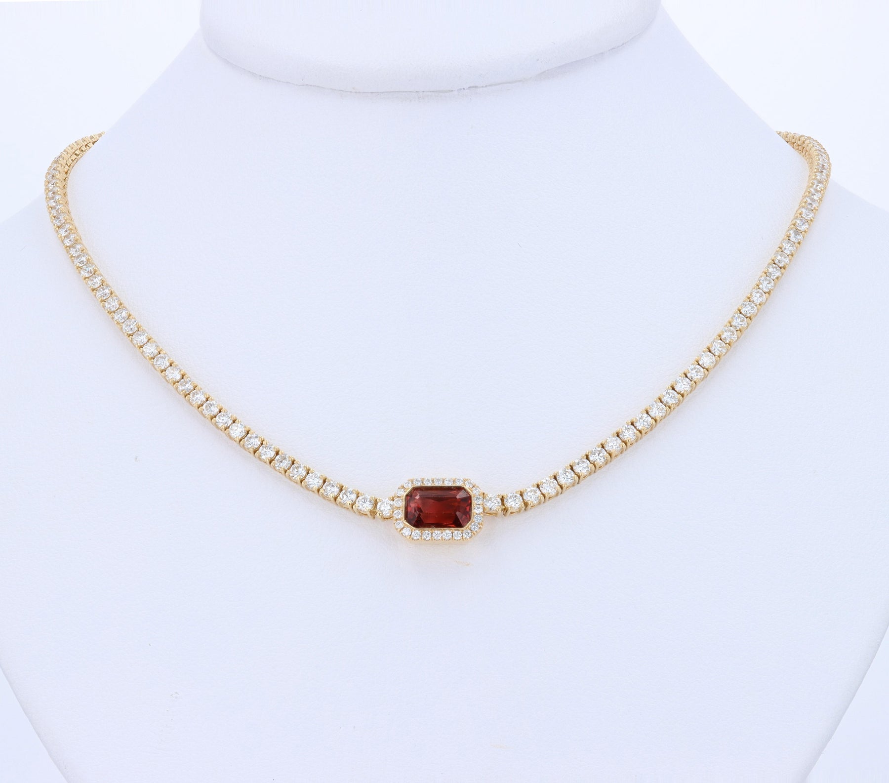 14kt Yellow Gold 7.84ct Lab-Grown Round Diamonds & Tourmaline(2.20ct) Necklace ~ Tourmaline is EC and Peachy-Orange in Color ~ 17"