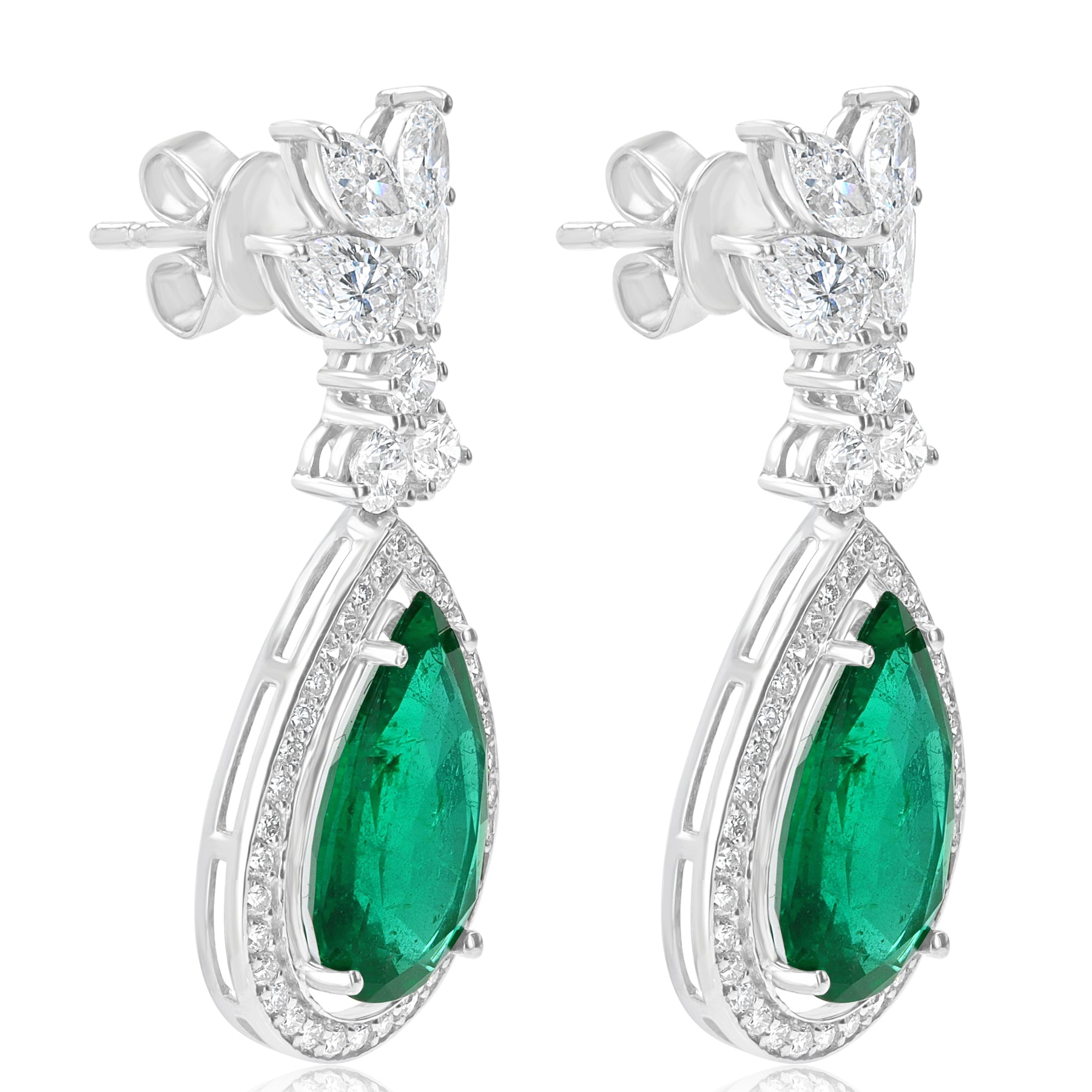 18K White Gold Pear-Shaped Emerald & Diamond Drop Earrings