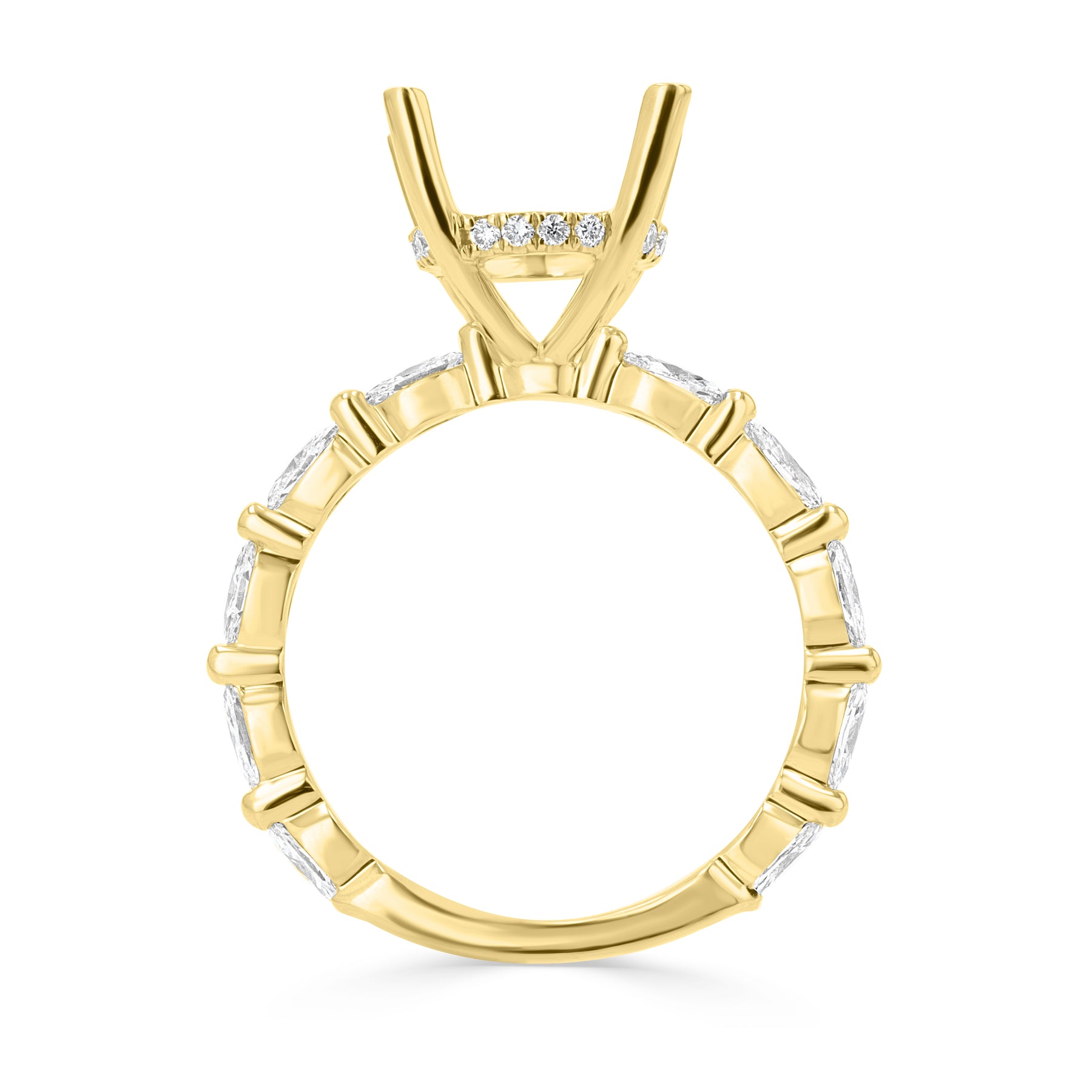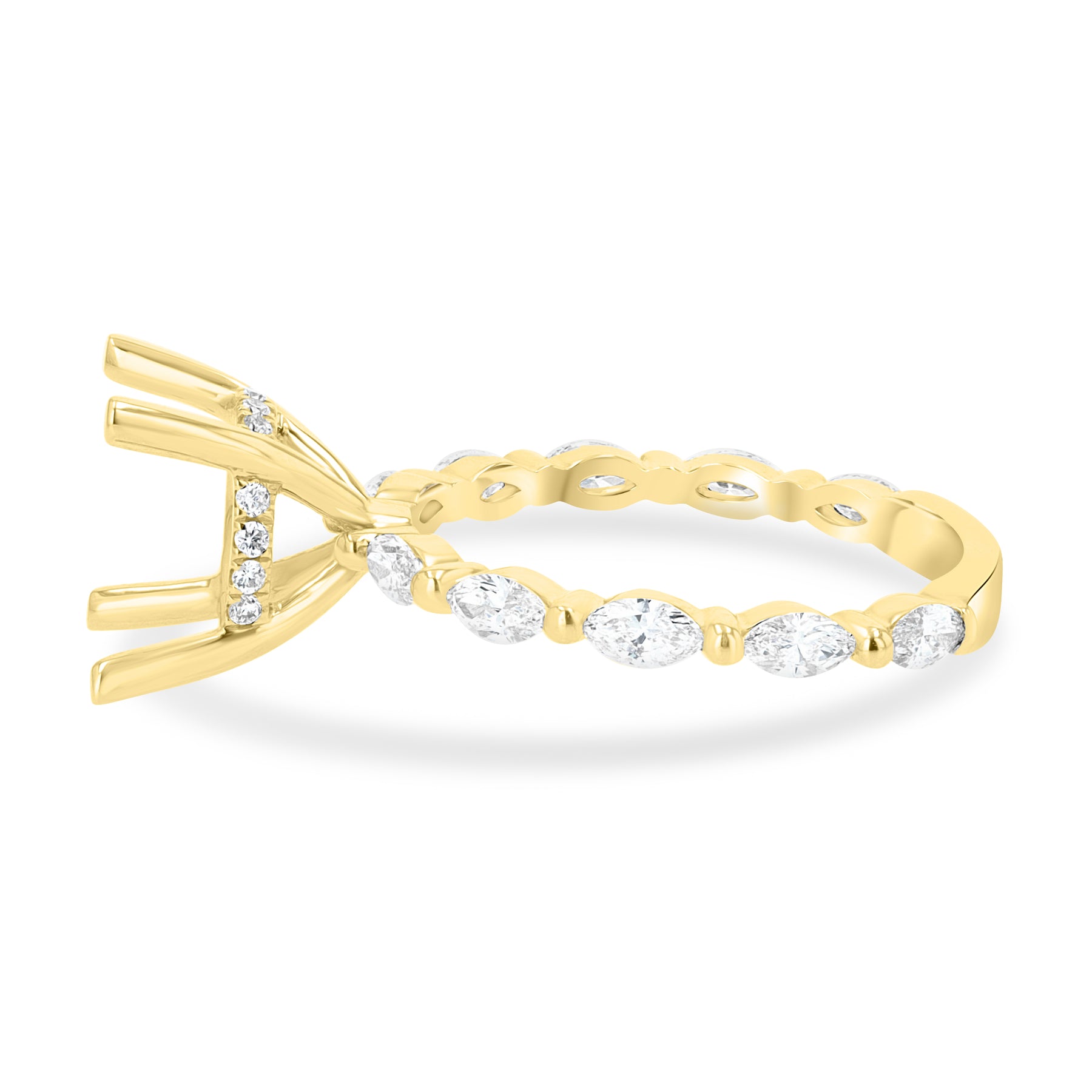 18kt yellow gold engagement mounting designed for an 8.8mm round center stone, featuring a total of 26 accent diamonds totaling 0.71 carats. The mounting is elegantly set with 10 marquise-shaped diamonds totaling 0.63 carats, complemented by 16 round brilliant diamonds totaling 0.08 carats, creating a refined and timeless look.
