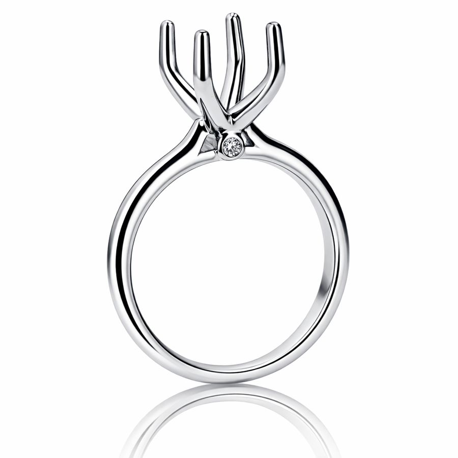 18kt White Gold 4-Prong Engagement Mounting with Accent Diamonds