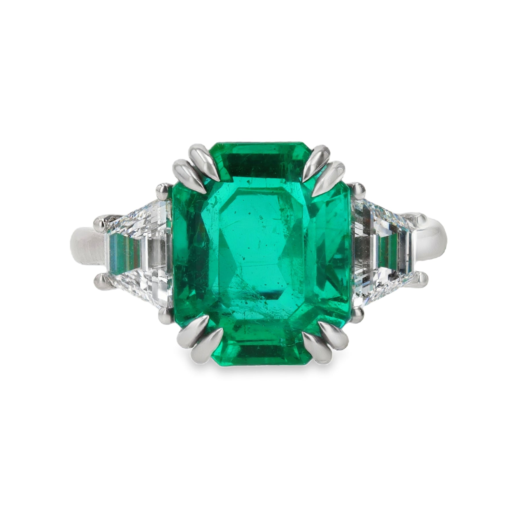 5.07ct Colombian Emerald & Trapezoid Diamonds Platinum Ring