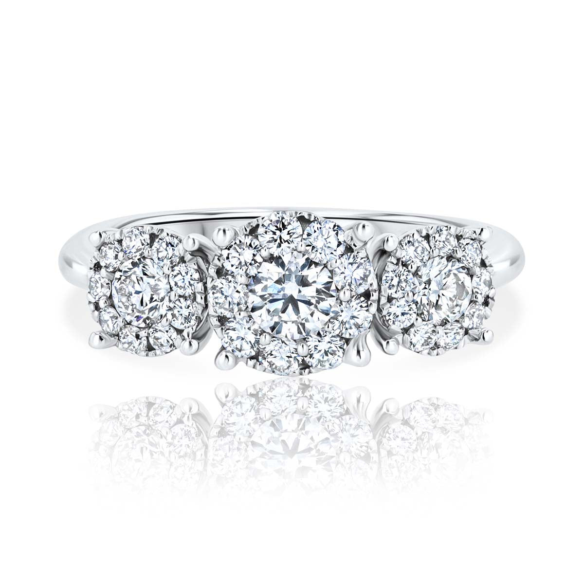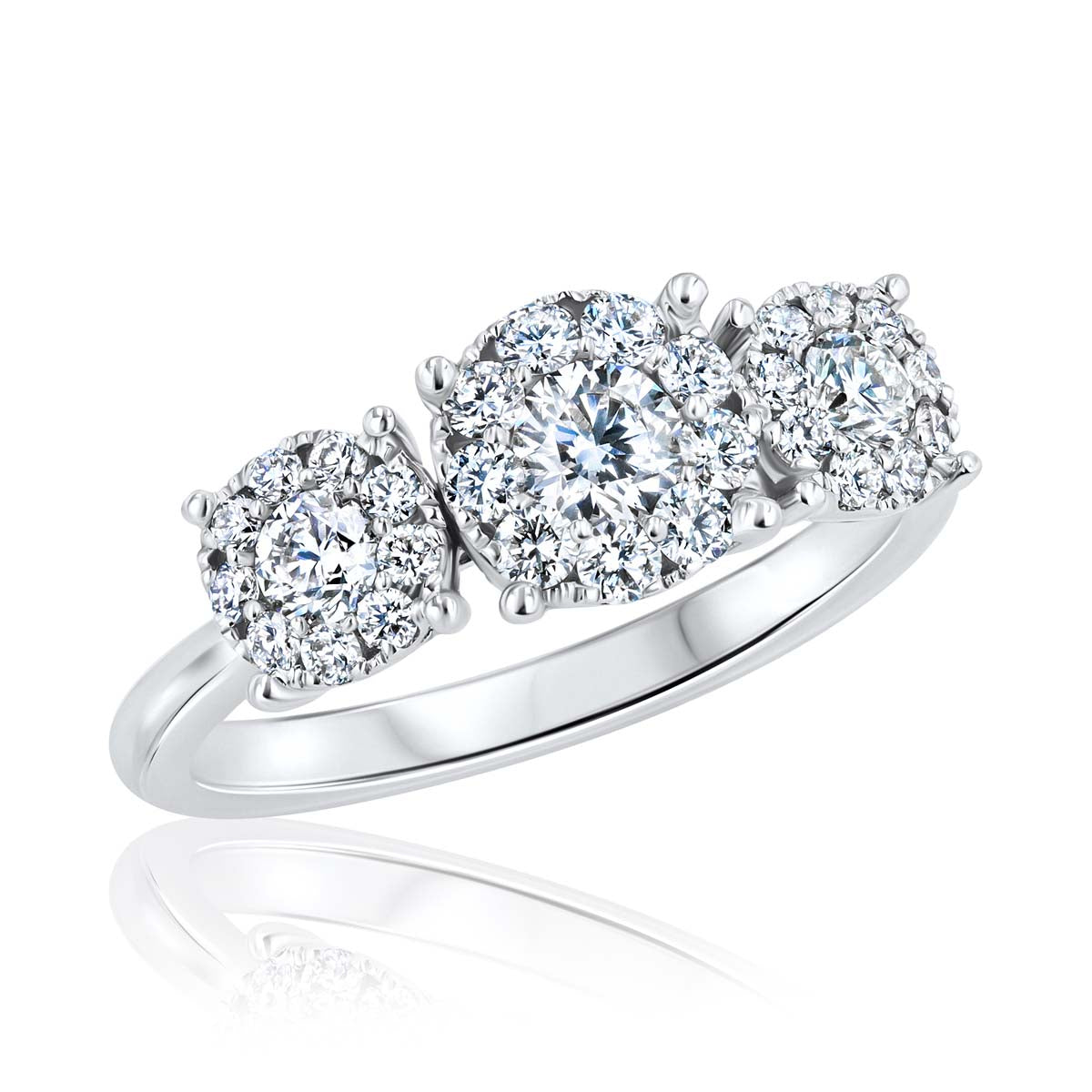 Three-Stone Cluster 0.90 Carat Diamond 18K White Gold Ring